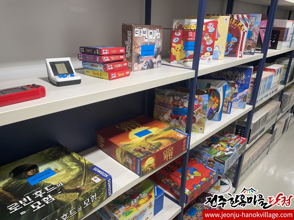 지하에는 각종 보드게임, 만화책 전집 등이 있어요.